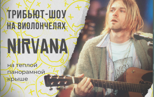 ТРИБЬЮТ-ШОУ ЛЕГЕНДАРНОЙ ГРУППЕ NIRVANA НА ВИОЛОНЧЕЛЯХ. НА ПАНОРАМНОЙ ТЕПЛОЙ КРЫШЕ16+Да, это те самые концерты на теплой крыше, о которых говорит вся Москва! Готовьтесь к грандиозному возвращению легендарной солд-аут программы «Heart-Shaped Box» на виолончелях. Это настоящее рок-посвящение Курту Кобейну на атмосферной панорамной крыше в центре Москвы! «Rape Me», «Smells Like Teen Spirit», «Come As You Are» и другие культовые хиты «Nirvana» в новом мощном звучании исполнит самый знаменитый виолончельный коллектив России «Limonсello». Не пропустите долгожданный концерт уникальных музыкантов, насладитесь потрясающим шоу на виолончелях и окунитесь в нашу непередаваемую атмосферу на теплой крыше в такт с мировыми хитами «NIRVANA».