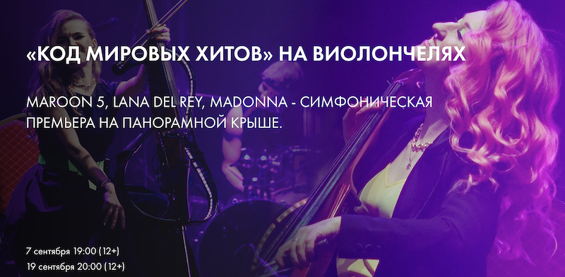 «Код мировых хитов» на виолончелях: Maroon 5, Lana Del Rey, Madonna — симфоническая премьера на панорамной крыше статьи