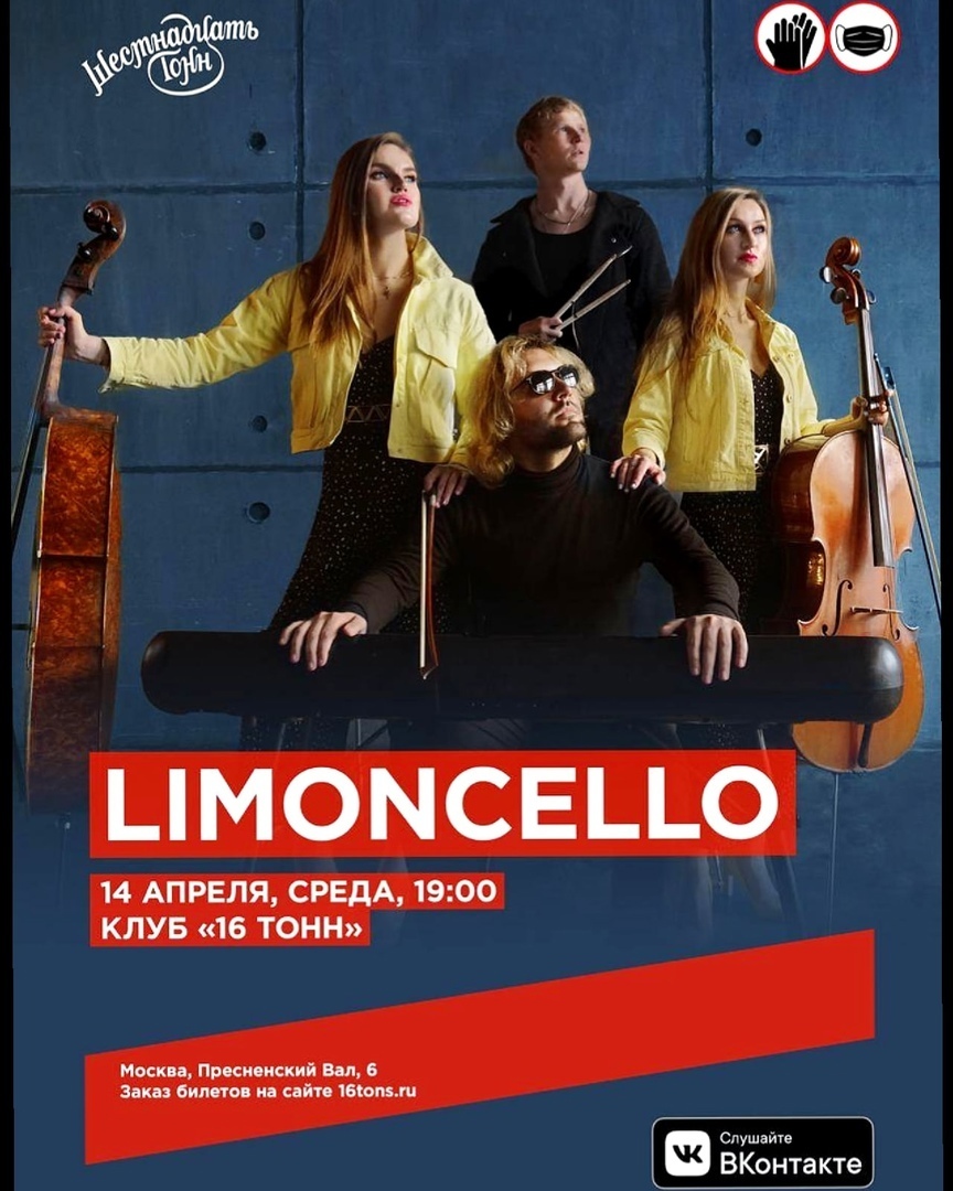 Впервые группа Limoncello в «16 Тонн» ! 2 виолончели, ударная установка и фортепиано. Виолончельные нимфы и тяжёлые гитарные рифы, оригинальные и мощные аранжировки,